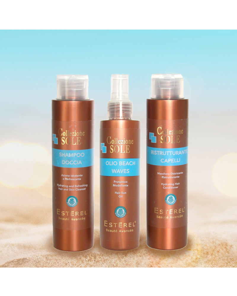 The specific beauty care to hydrate, restructure and protect hair during and after exposure to the sun. The shower shampoo ensures deep cleansing, hydrating and regenerating damaged stems and ends. Beach Waves oil protects hair exposed to sun, salt and chlorine while the restructuring treatment strengthens the structure of damaged hair, with an effective hydrating and repairing action.